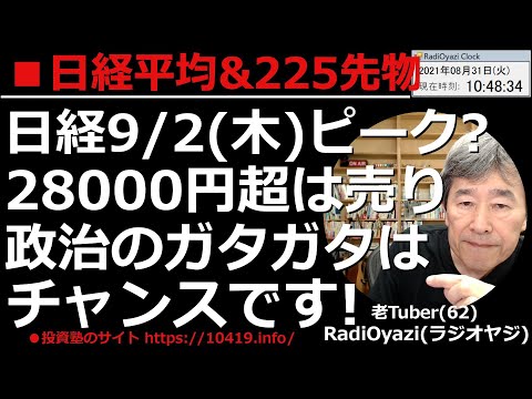 2021年8月31日(月)、日経平均と225先物の短信です。 日経平均は安く寄り付いて上昇したが、やや上値重く推移しています。今週は木曜日まで上がりやすく、金曜日以降下がりやすいチャートになっています...