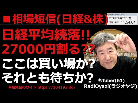 2021年8月19日(木)、明日の投資チャンスを探る動画です。 日経平均は27281円、-300円と安く引けました。時間外の先物はさらに下げて27000円に接近しています。世界の相場にリスクオフムード...